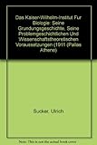 Das Kaiser-Wilhelm-Institut für Biologie: Seine Gründungsgeschichte, seine problemgeschichtlichen By Rar